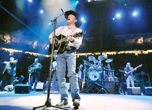 THIRD FROM TOP: Country superstar George Strait performs Friday night at the University of New Mexico's Pit.
