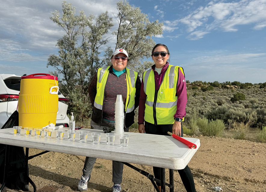 Volunteers Tiona Grant and Natalie Hanley of the Utah Navajo Health System work at a check point during the Just Move It finale during the 102nd Annual Gallup Inter-Tribal Indian Ceremonial on Aug. 3.