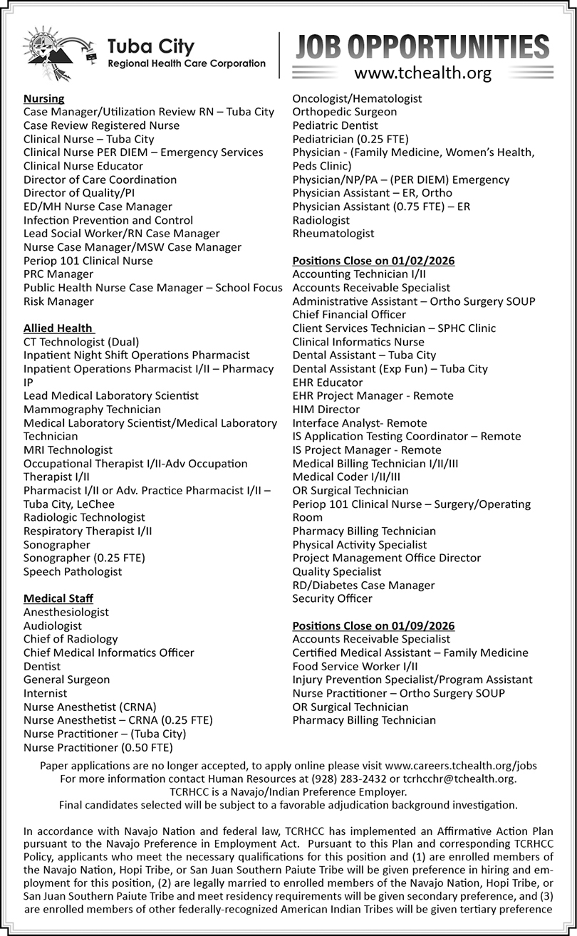 Published in the Navajo Times: December 26, 2025 & January 2, 2025