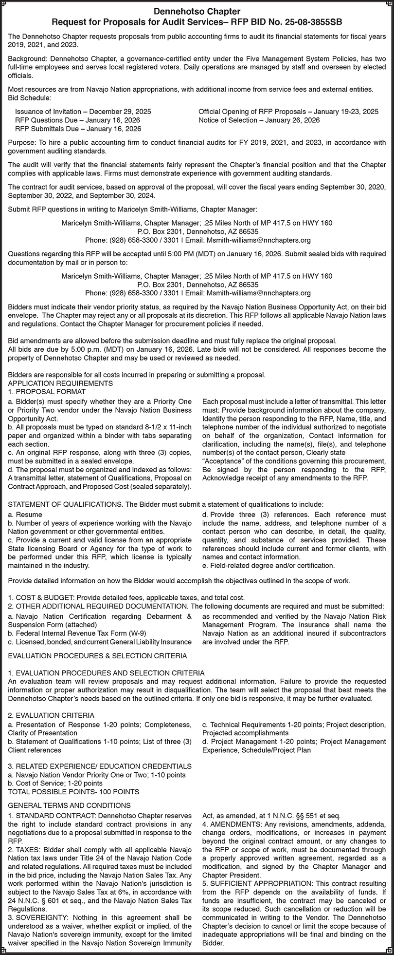 Published in the Navajo Times: December 18, 26, 2025 & January 2, 8, 2026