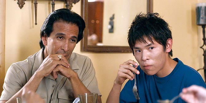 Sheriff Gil Lujan, left, played by Gregory Zaragoza of Los Angeles, and his son, Nate Lujan, played by Shelby Lincoln Mark of Shiprock, appear in a scene from the independent movie thriller "Jordan," which is scheduled for release in about a year.
