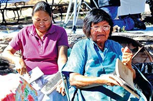 TOP PHOTO: Emma Benally, right, and her daughter Donna, both of Newcomb, N.M., card wool during the 13th annual Toadlena Carding and Spinning Day on Sept. 25.