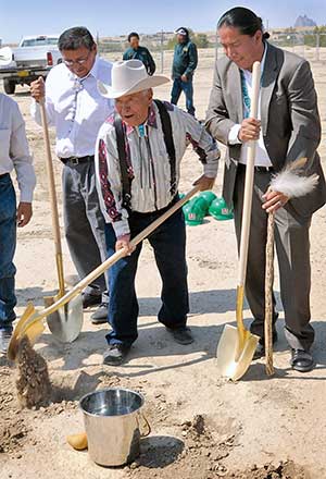 Diné College President Ferlin Clark, right, joins State Sen. John Pinto, center, and Vice President Ben Shelly, left, at an Aug. 18 groundbreaking in Shiprock for the $5 million DinŽ College library named for Pinto. The college's board of regents has scheduled a meeting Oct. 7 to discuss Clark.