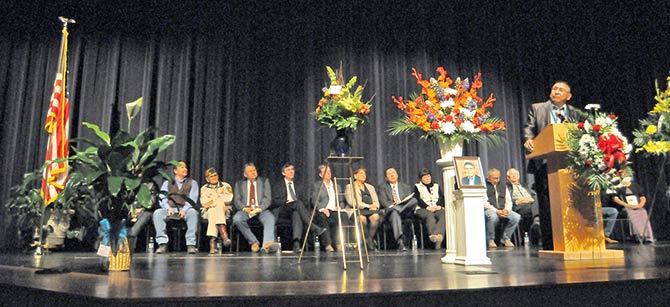 Among the dignitaries were Navajo Nation Vice President Ben Shelly, former Navajo Nation President Peterson Zah, Speaker Lawrence T. Morgan, former Vice Chairman Edward T. Begay, former Vice President Milton Bluehouse Sr., and New Mexico Indian Affairs Department Director Alvin H. Warren, who represented Gov. Bill Richardson. Clinton Jim, an aide to President Joe Shirley Jr., spoke on Shirley's behalf.
