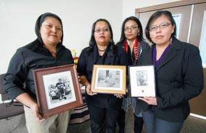 BELOW: Granddaughters of the late Navajo Code Talker Johnny Alfred from left, Lavisha Alfred, Muriel Goldtooth-Alfred, Aerielle Alfred and Kraynal Alfred during his funeral Wednesday in Tuba City. Alfred passed away on Saturday.