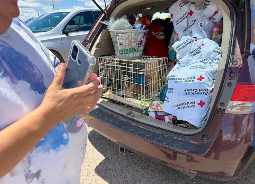 An evacuation shelter remains open at the Window Rock Fighting Scouts Event Center in Fort Defiance, while the shelter in Ganado is in the process of closing. A large animal shelter has been set up at the Dean C. Jackson Memorial Arena in St. Michaels, according to the BIA Wildland Fire Management. Shelter staff are asking the public to stop bringing donations, except for hay, which is still needed.