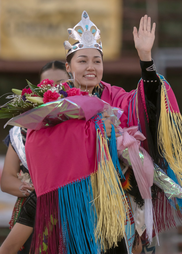 Tewakeedah Rain Spirit Martin of Montezuma Creek, Utah, was crowned the 2025-26 Miss Gallup Inter-Tribal Indian Ceremonial Queen on Friday evening at the Red Rock Park, waving to a cheering crowd as she held bouquets of flowers and wore a brightly colored shawl with fringe.