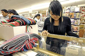 Benally, who is Bit'ahnii '(Folded Arms Clan) born for Ta'neeszahnii (Tangle Clan), said he does his best to carry items people request, which includes Native American music CDs, beaded items, brain-tanned deer hides and Pendleton woolens fabricated into a range of items.