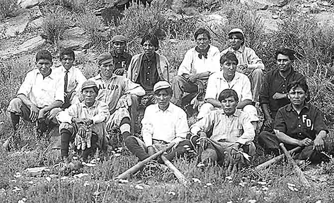 Members of the Albuquerque Indian School baseball team pose for a photo sometime in the 1930s.