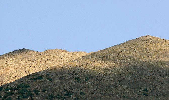 Mere specks they become as two people, center, get closer to the top of Mt. Humphreys Aug. 20 near Flagstaff.