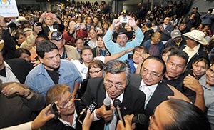 But from the first reports coming in from election central, located at the Window Rock Sports Center, the numbers were reassuring and the crowd became noticeably excited. With 22 chapters reporting, Shelly had a small lead (6,955 to 5,730).