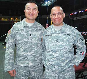 BOTTOM: First Lt. Winston Holyan, left, of Tohatchi, N.M., and Master Sgt. Eugene Tapahonso, from Shiprock, were among National Guard soldiers who were welcomed home Tuesday after a yearlong tour in Kosovo.
