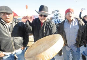 "It's to support our relatives in Canada, Chief Theresa Spence and her fasting," said the 28-year-old, who also sang Native American Church peyote songs.