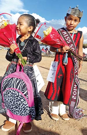 Top to bottom: The newly crowned Little Miss Southwestern for 2014-2015 Miya Sam pose for a photo with first runner-up Riley Yellow. If Sam is unable to fulfill her duties as Little Miss Southwestern, Yellow will step in and take over her duties.