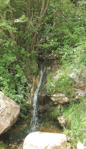 SECOND FROM TOP: Toh day Lini (Waterfall Spring), near Lukachukai, Ariz. is tagged with graffiti. (Times photo – Cindy Yurth)