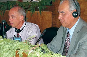Assistant Attorney General Henry Howe and Controller Mark Grant appear before the Navajo Nation Council on Nov. 4.
