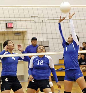 The Lady Falcons defeated Navajo Pine 3-2 (20-25, 25-23, 25-17, 17-25, 15-13) in the district opener on Oct. 2.